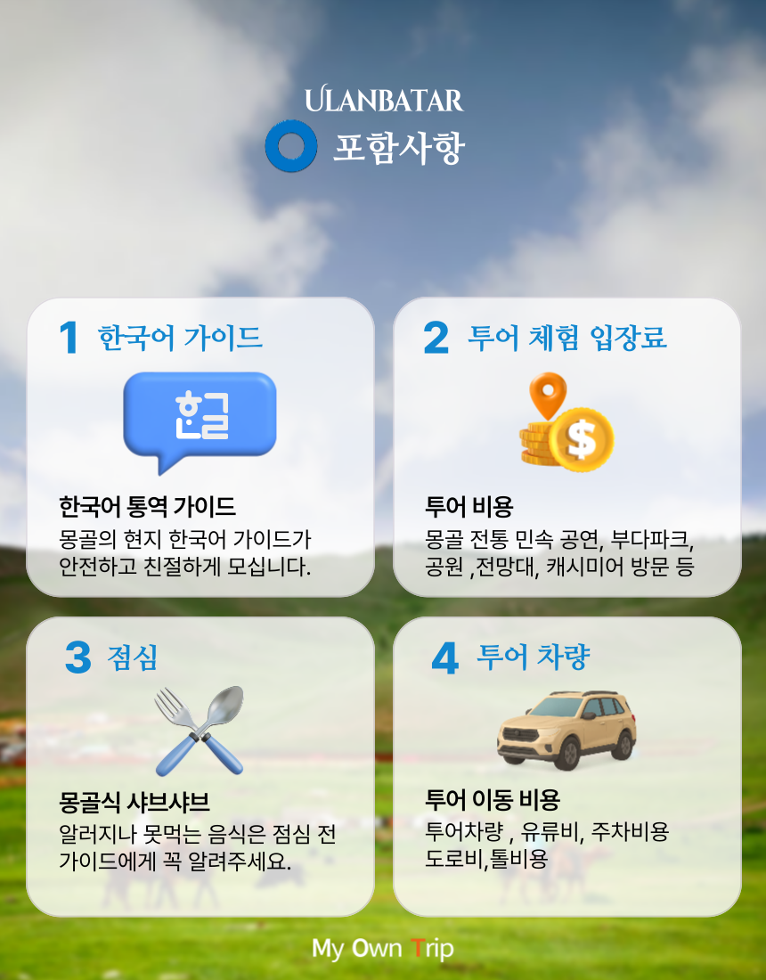 몽골인들의 현재 생활에 대하여 조금이나마 편견없이 이해할 수 있는 시간이 되는 투어!